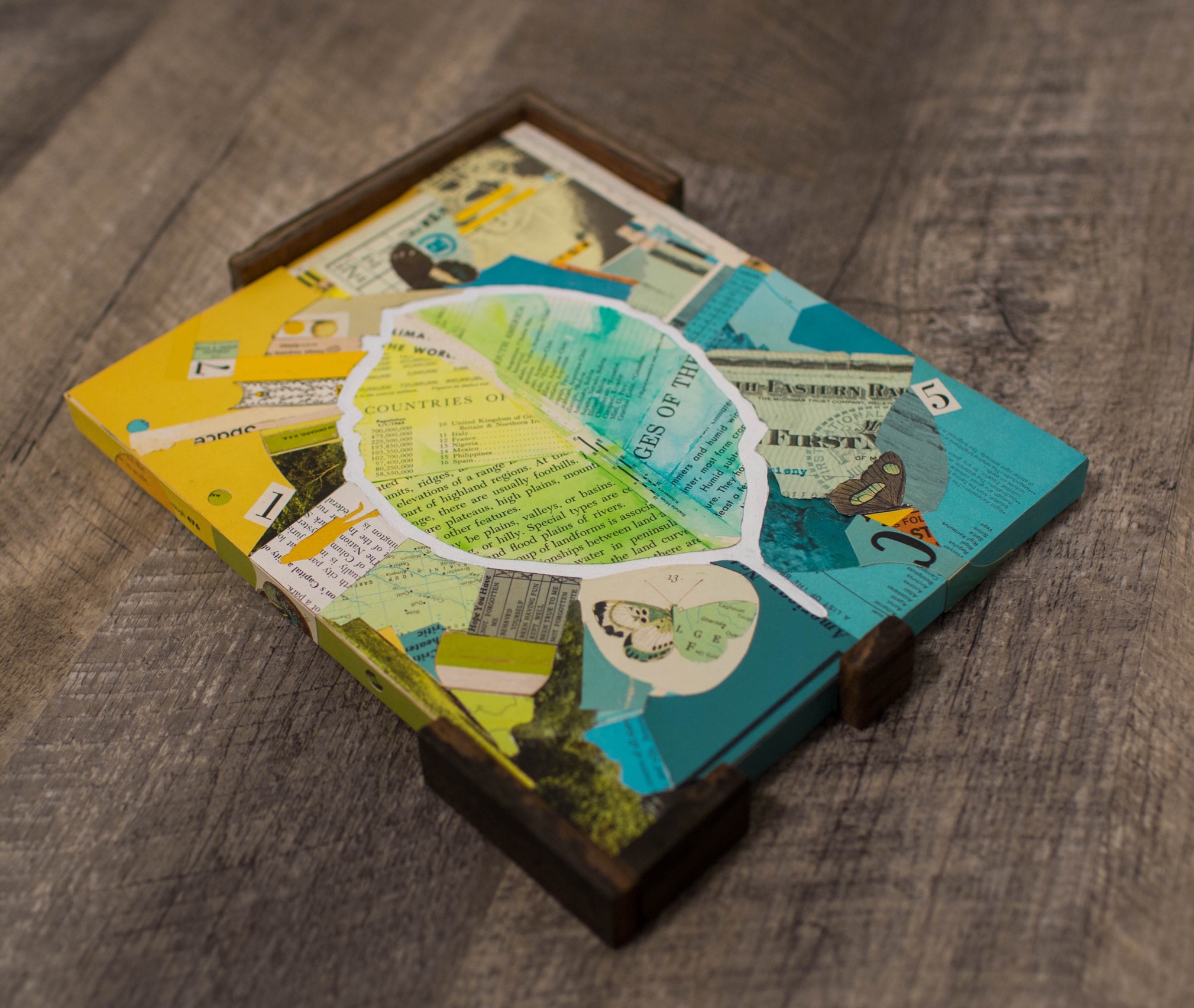 This piece was created entirely from scraps. Since I began creating these pieces, I have been saving everything... every scrap of paper, every wood cut-off, everything. I thought maybe they'd come in handy if I needed a little piece anywhere. So I decided to challenge myself to make a piece with only the scraps.