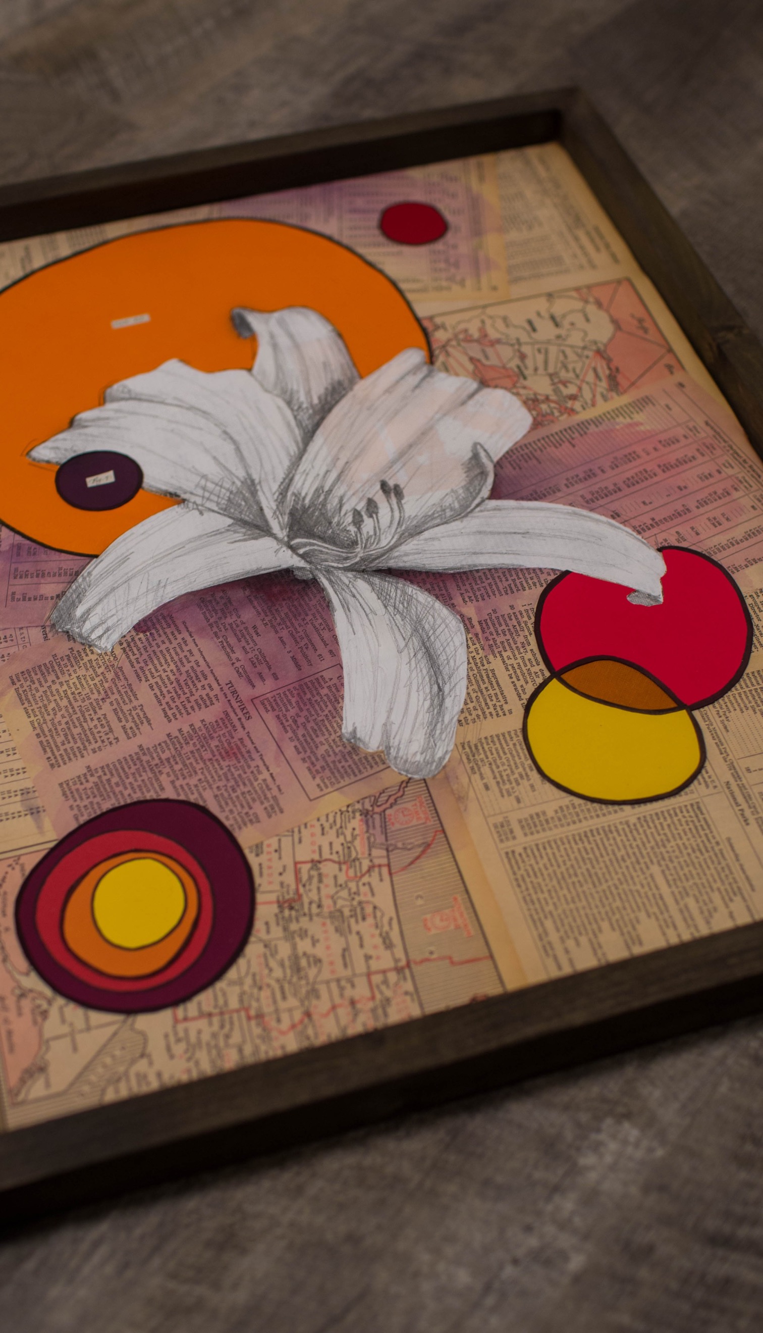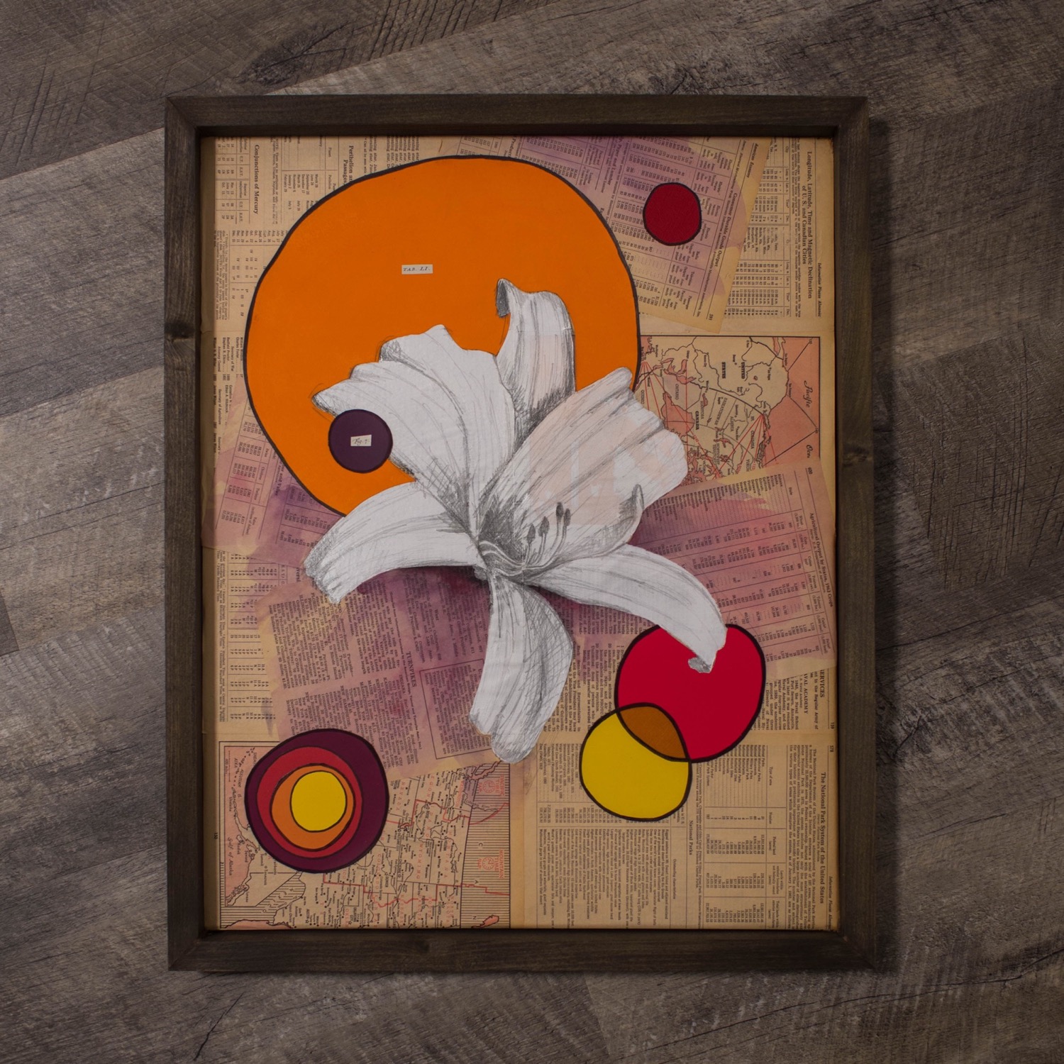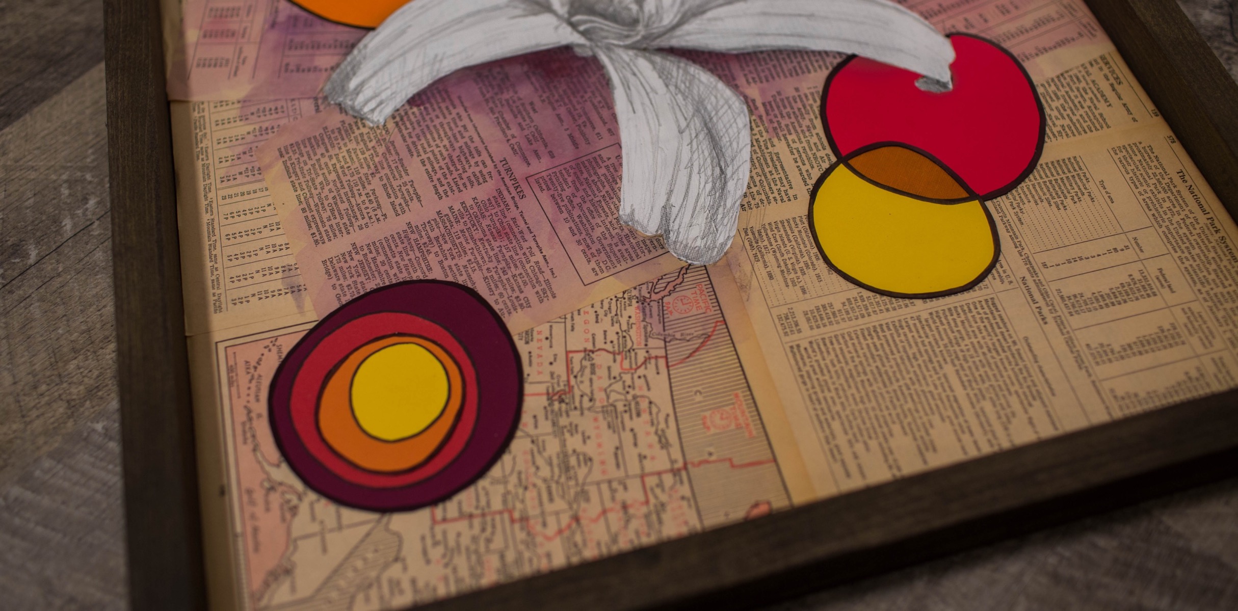 This piece brings together a few different approaches I've tried into one piece. It has components of the rings series, as well has heavy paper collage and a drawn element as well.