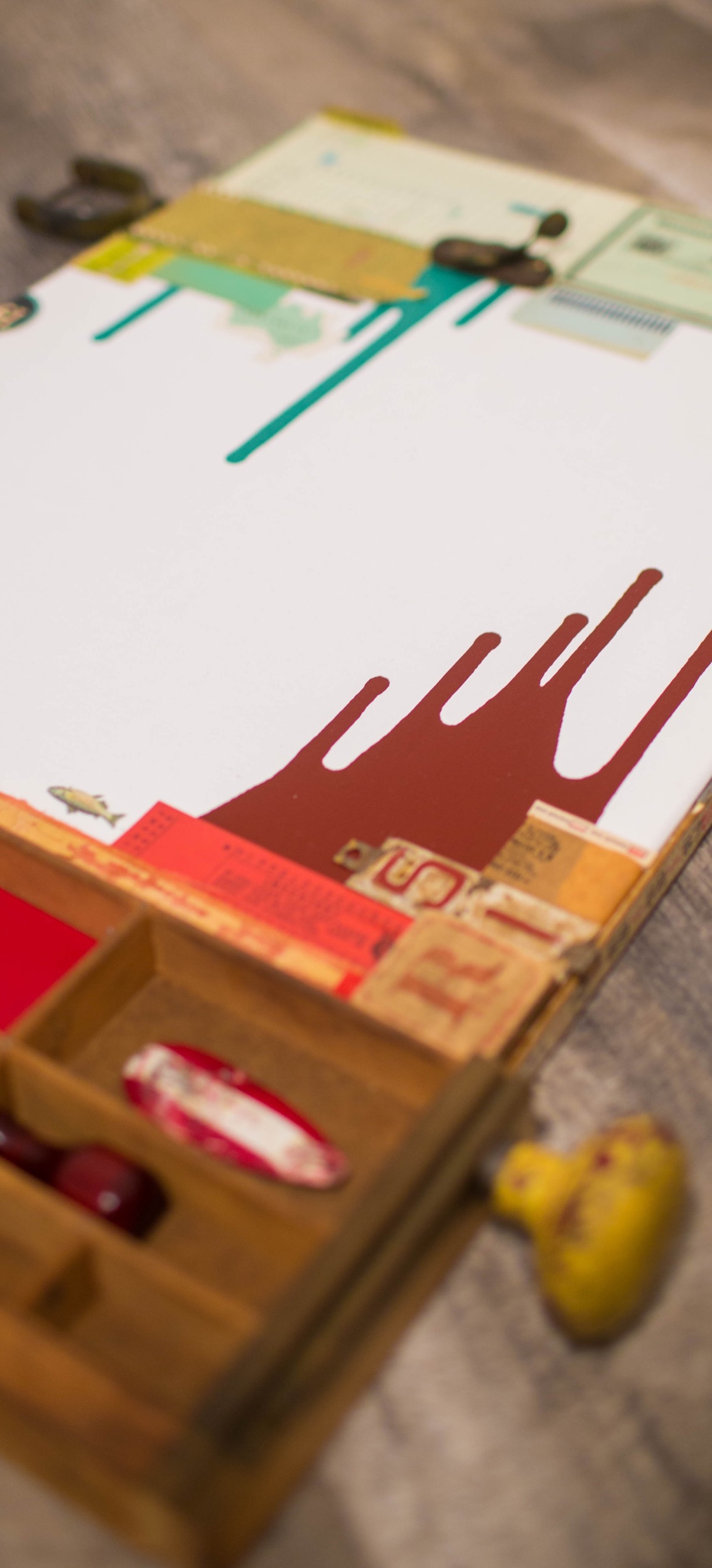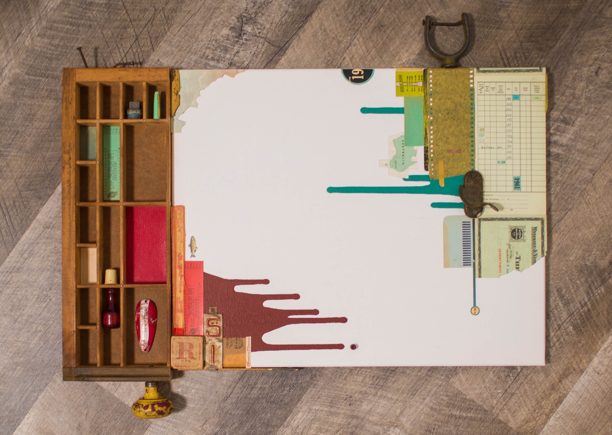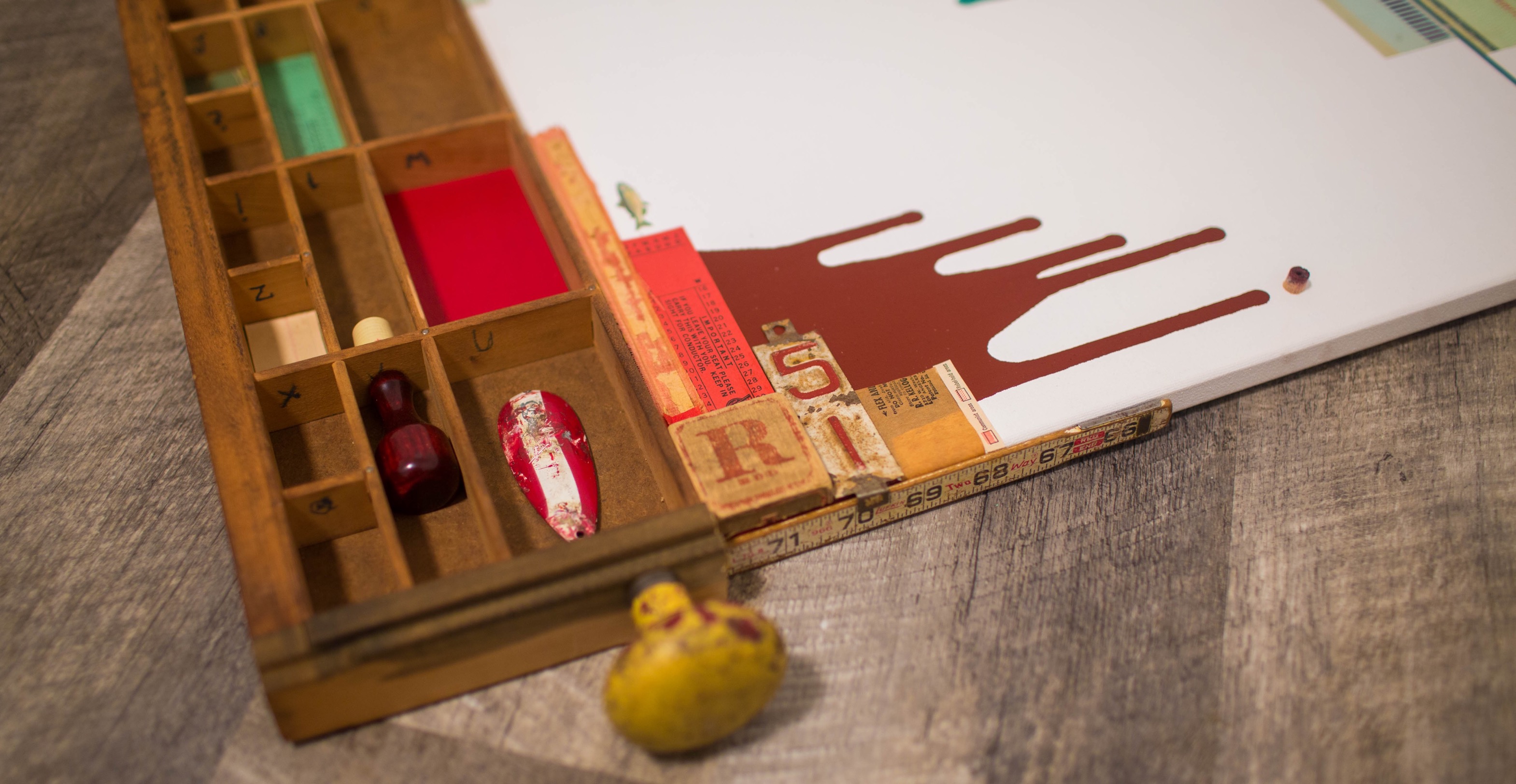 This piece is just a fun spatial exploration of complementary colors. Nothing means anything, just an interesting arrangement of red and green things.