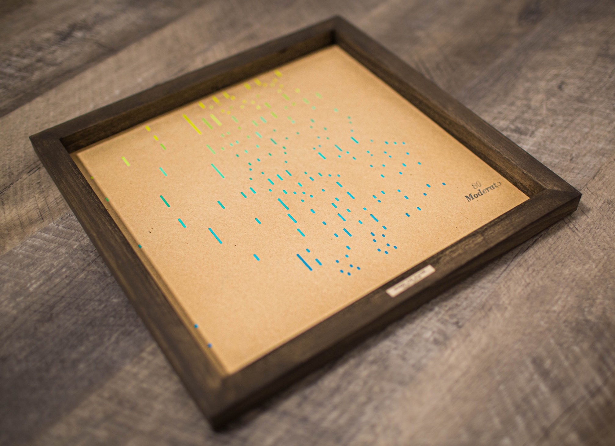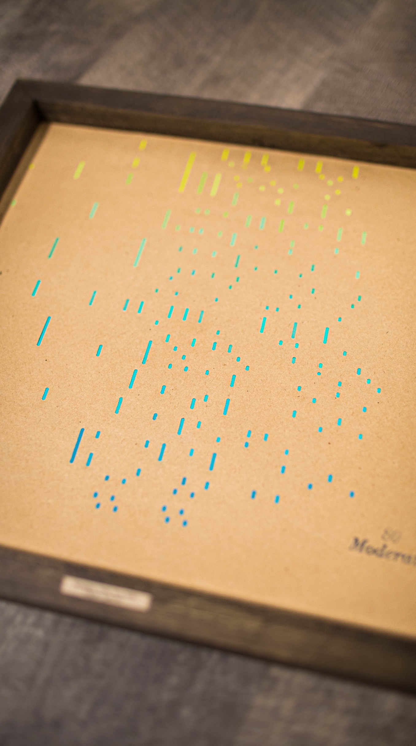 This piece is a bit special... it's the reason my website is called Sound of Design. About 20 years ago, I found a player piano reel at an antique store. I was immediately taken with the idea that I was looking at sound, but that sound was presented in the form of data - of design. The pattern of dots created such a compelling graphic design, yet it was just a map of sound... the sound of a design. My very first project on my website way back then was a Flash recreation of this functionality.