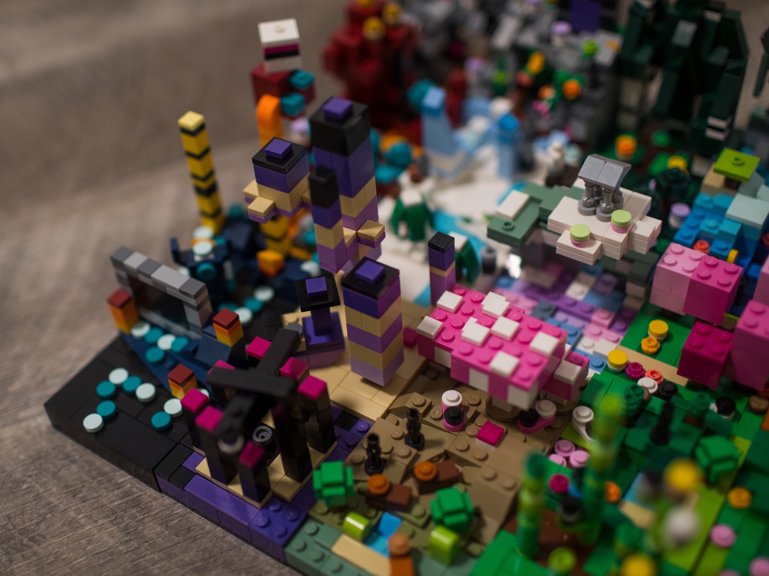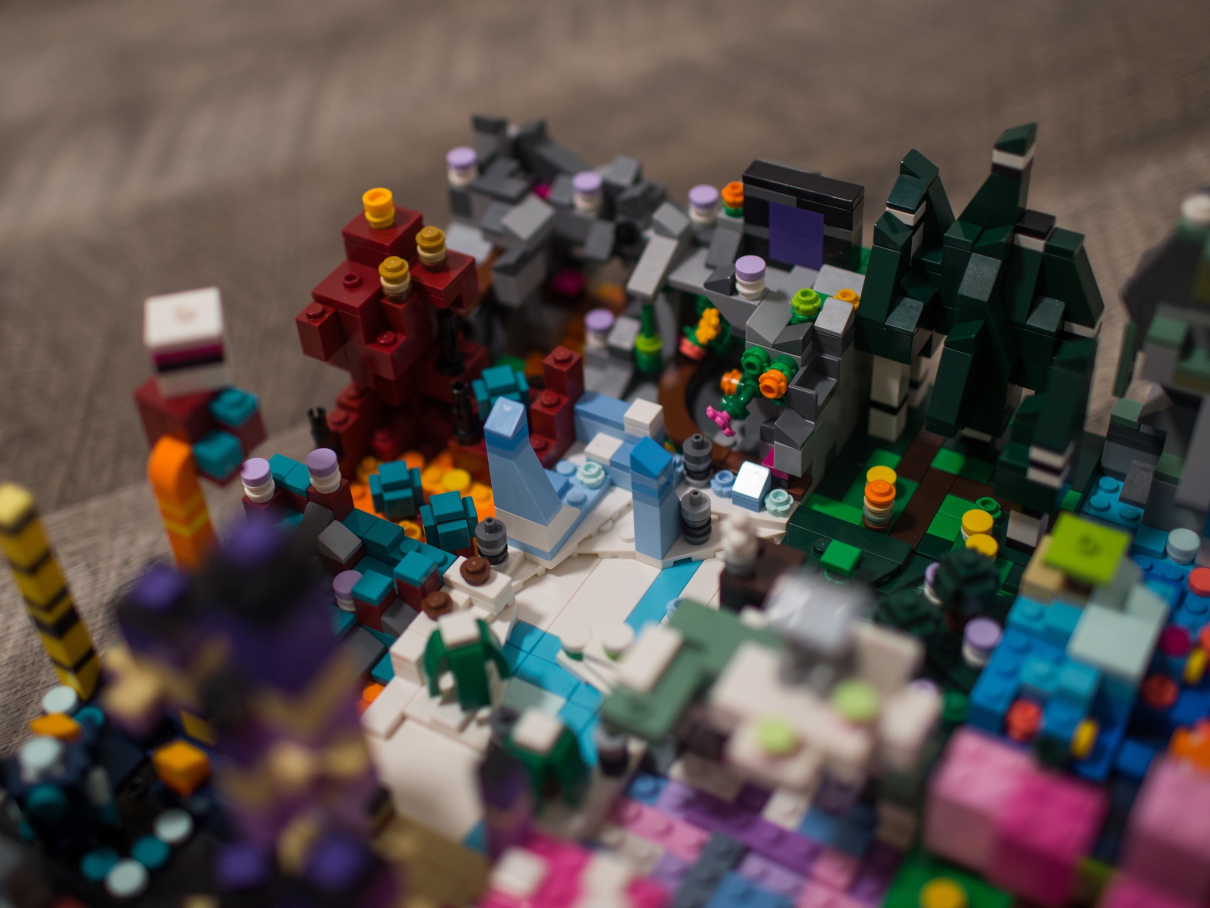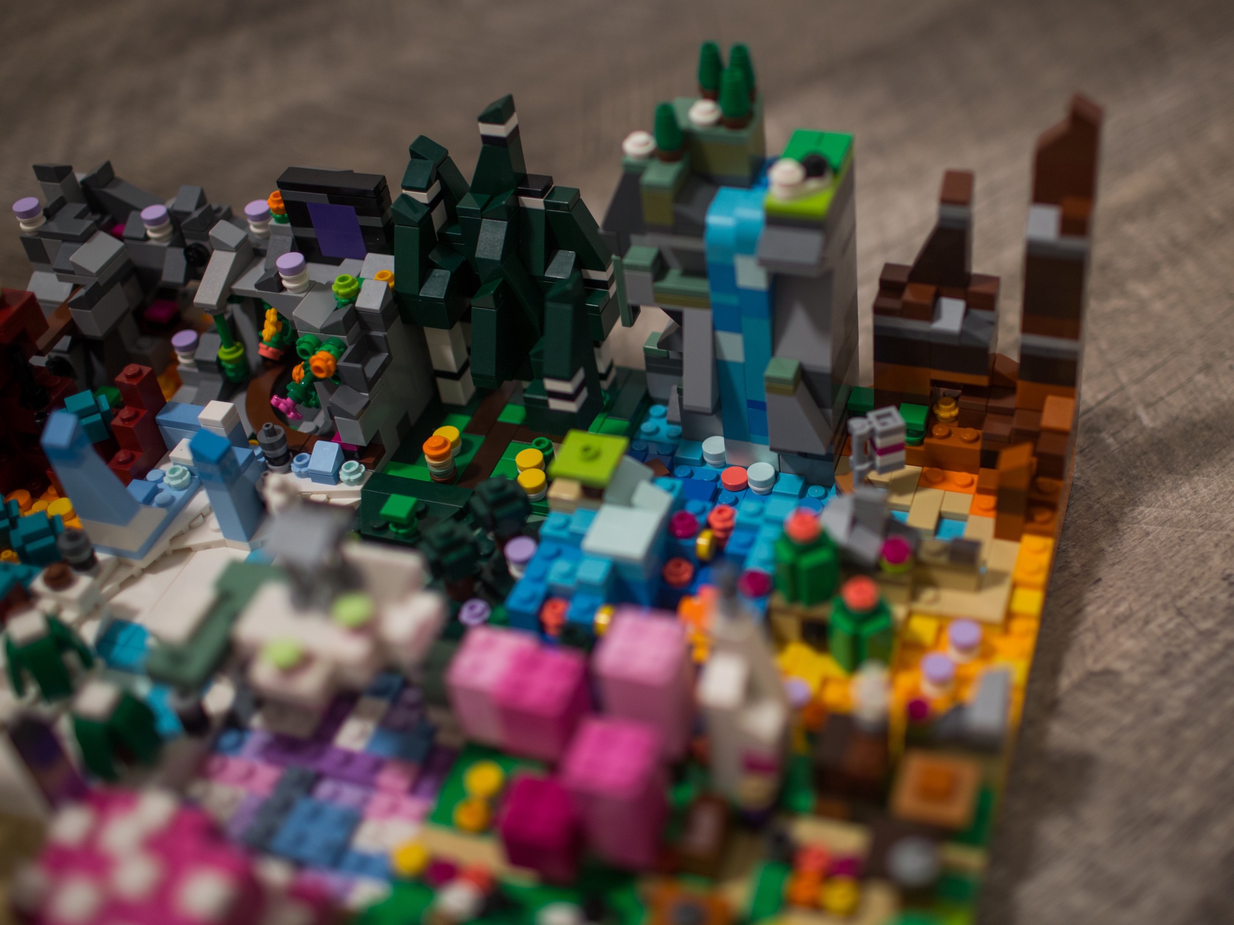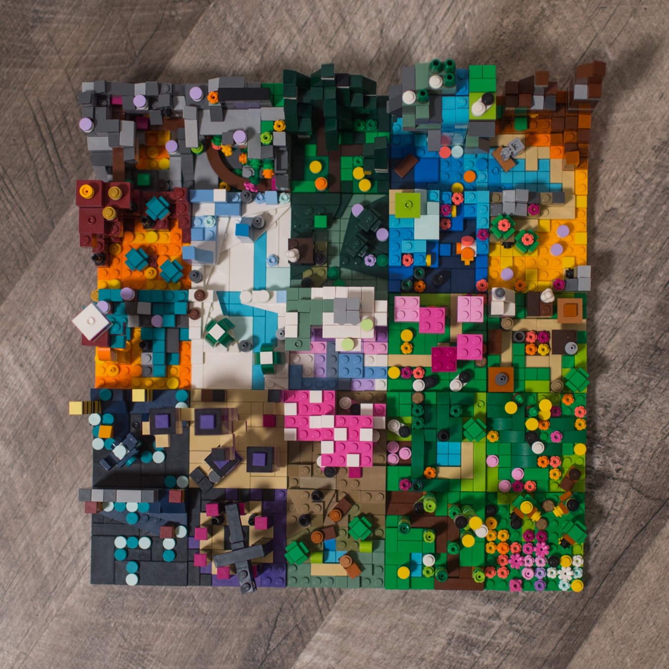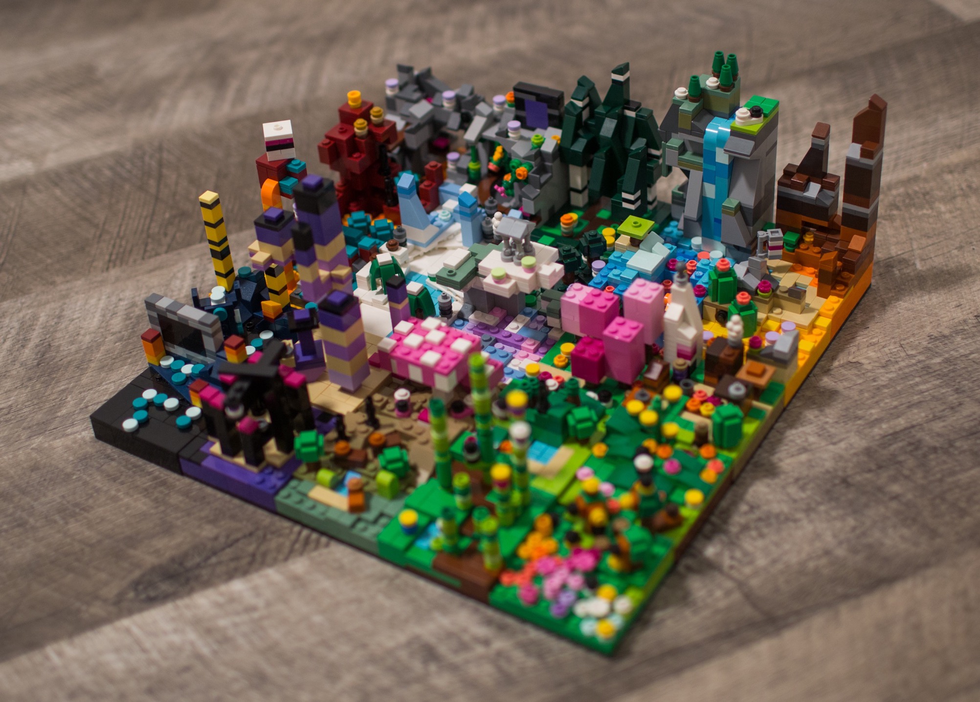 This project was the result of a few weekends of building with Aiden, focused on Minecraft as a theme. He built a set of characters and mobs while I built 25 mini 8x8 biomes from the game.