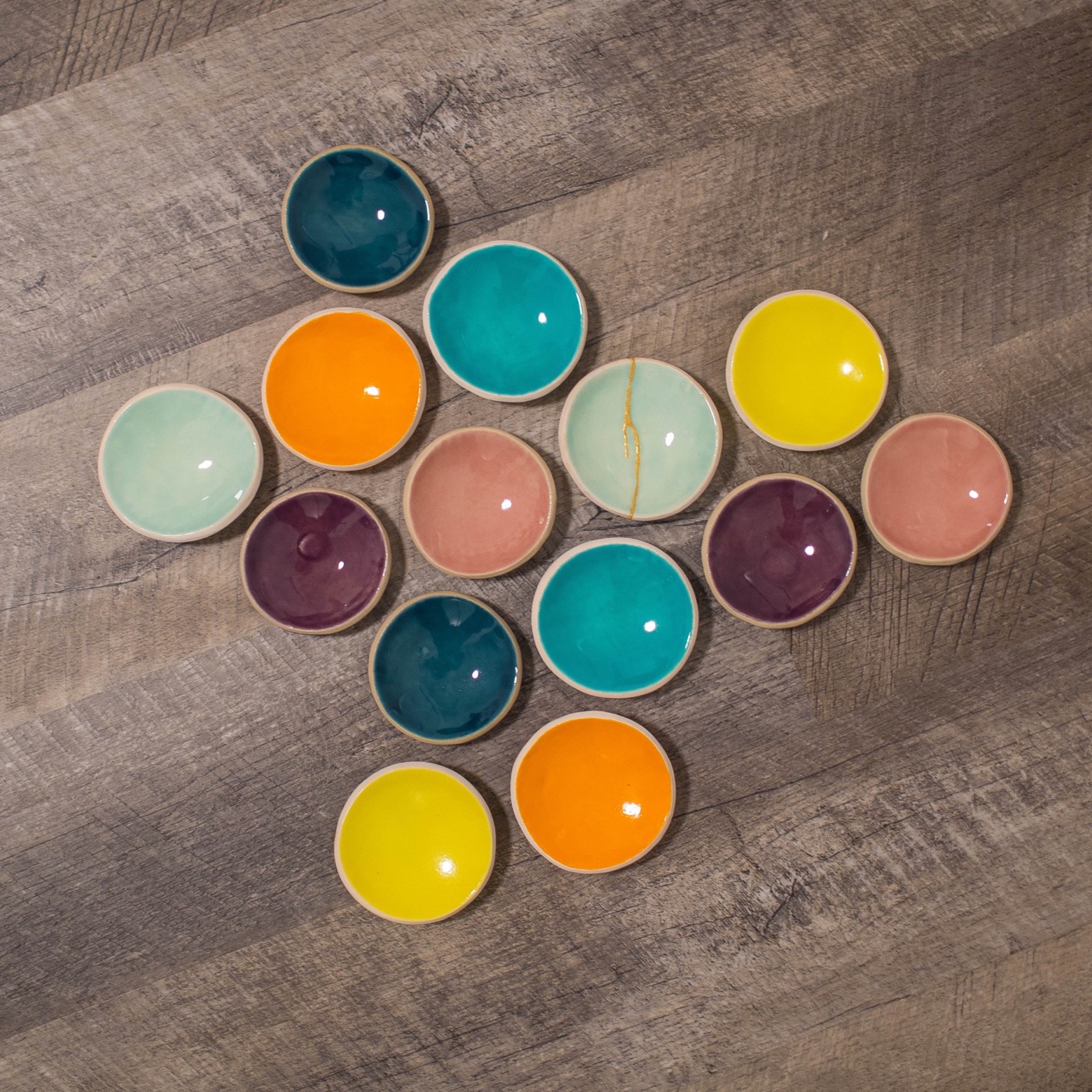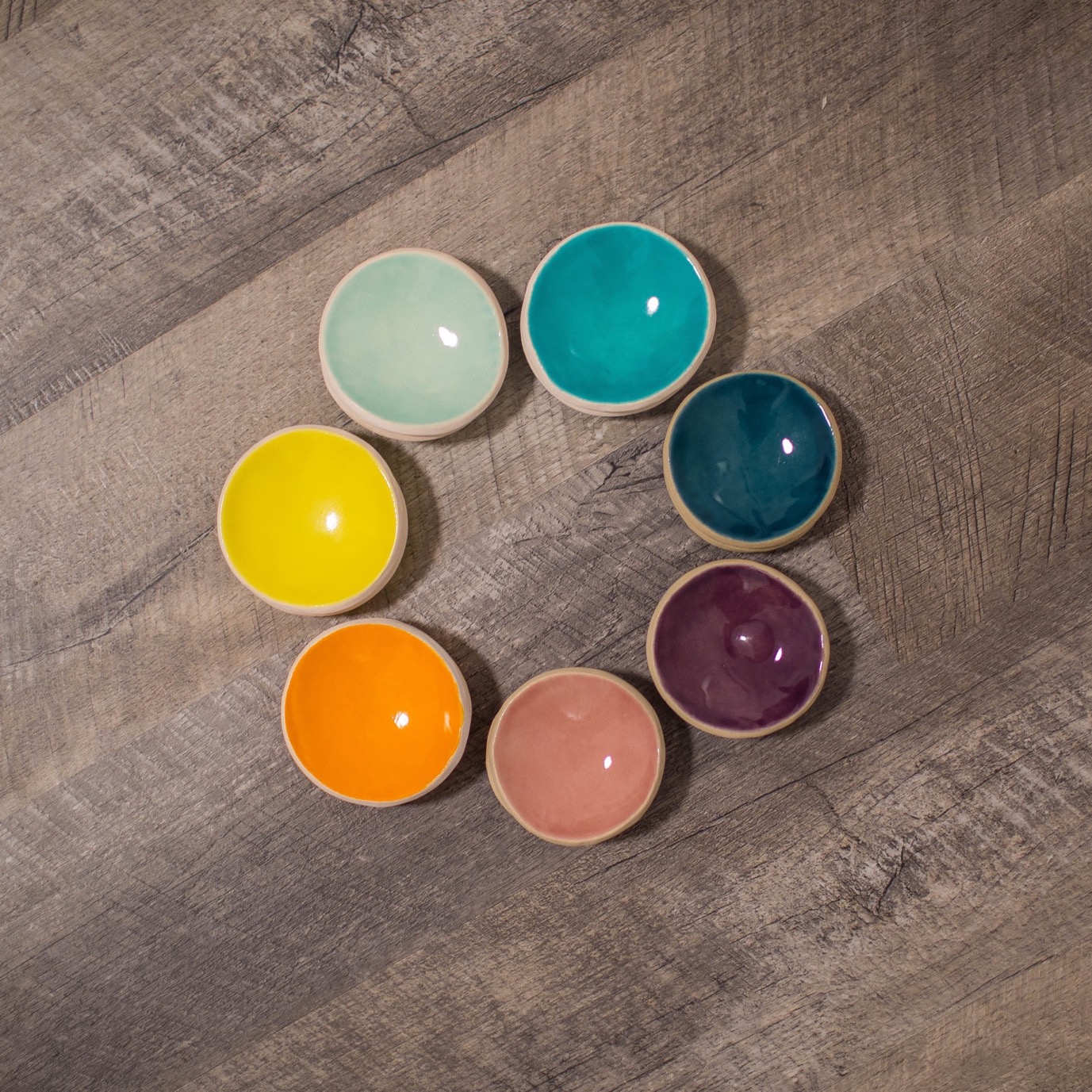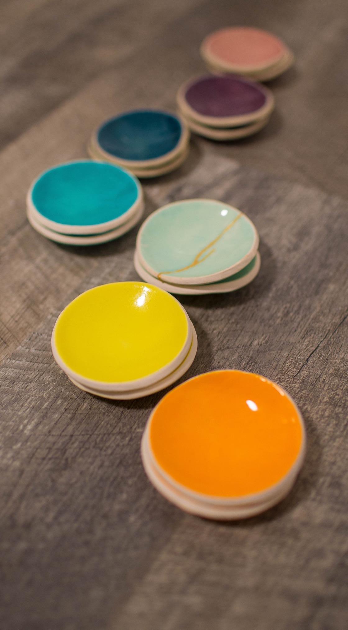 This set of bowls was designed and glazed to give me a ton of randomness and versatility in serving (often Asian-inspired) small bites courses. Along with the pictured bamboo bento boxes, I'll be creating three, six and even nine bite first courses in the spirit and style of the Japanese bento box.