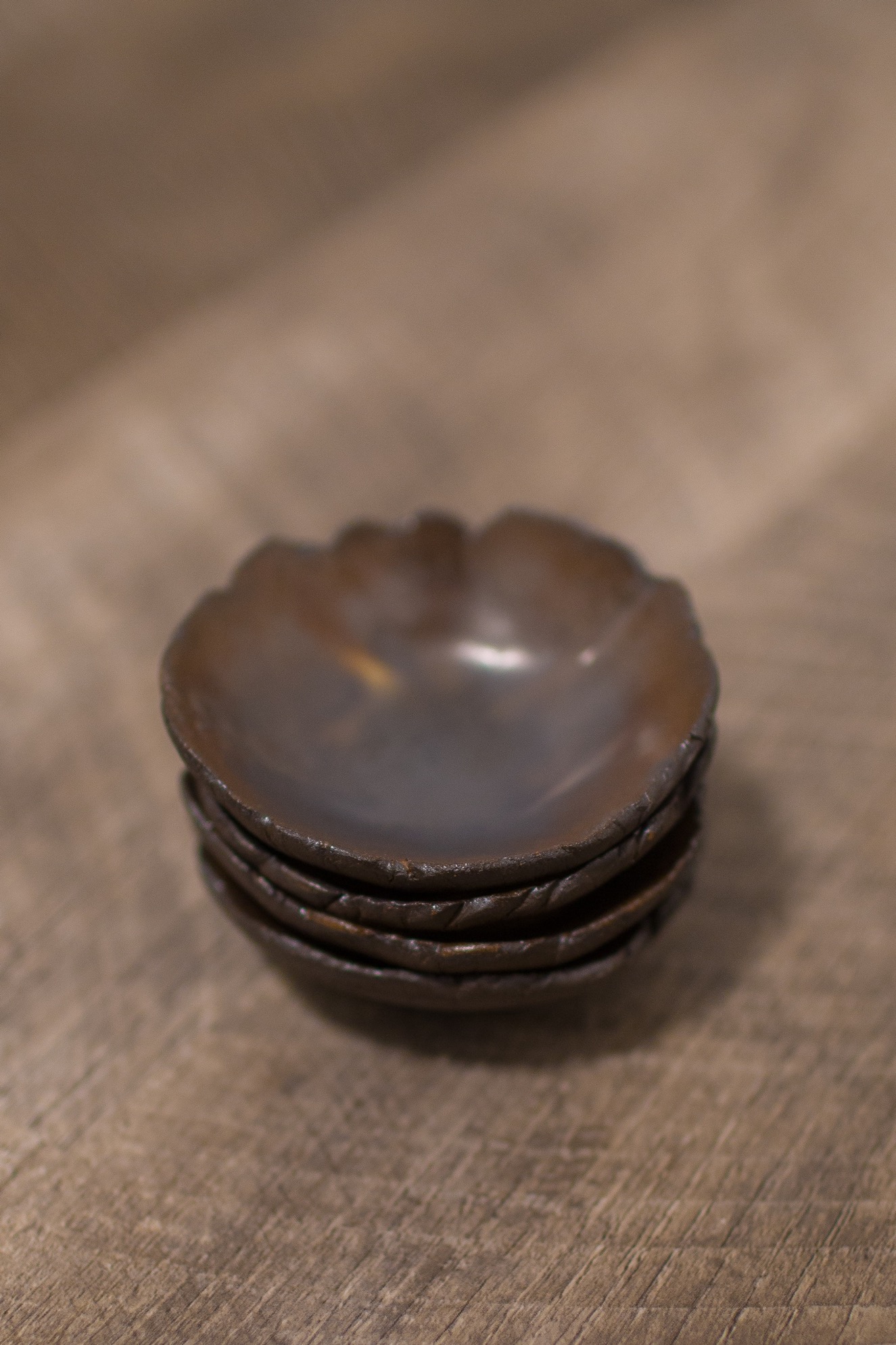 These bowls are my first experiment with metal powders. Here, I used Copper Carbonate. I want to keep playing with this, possibly even trying a Raku method to get the metal to turn green.