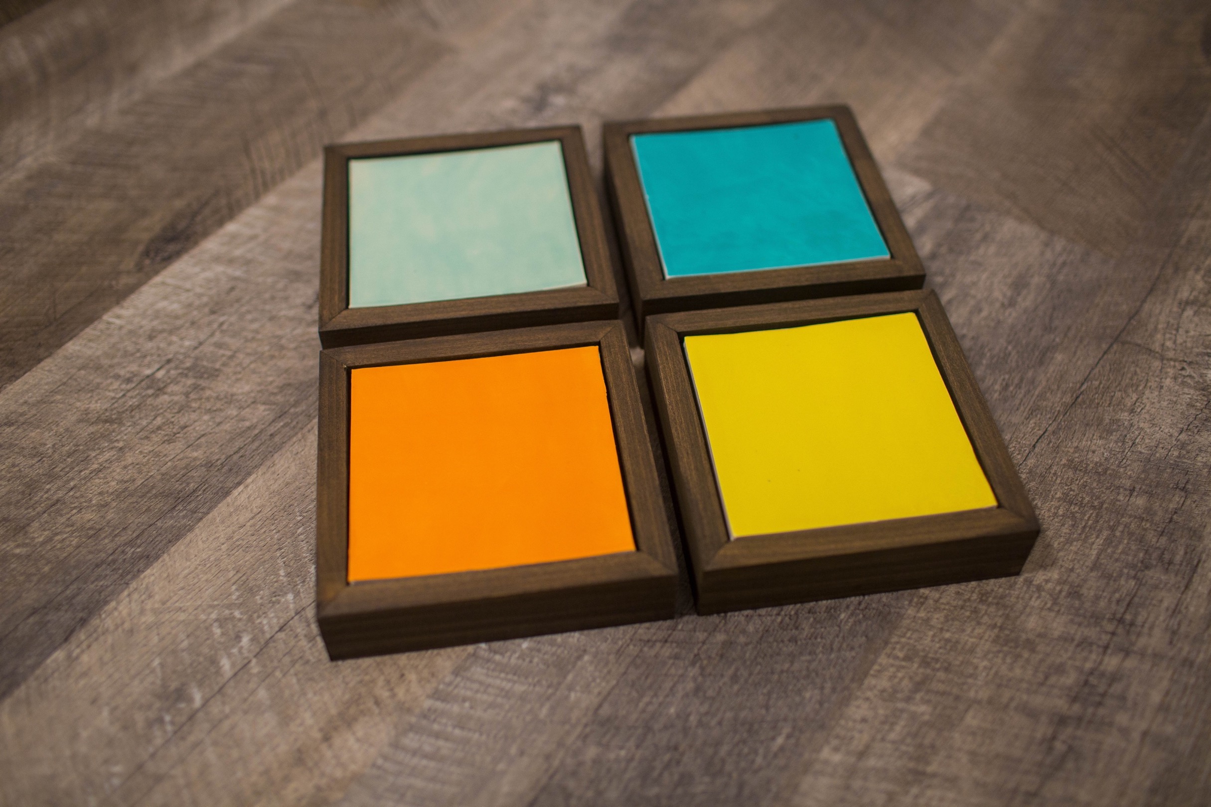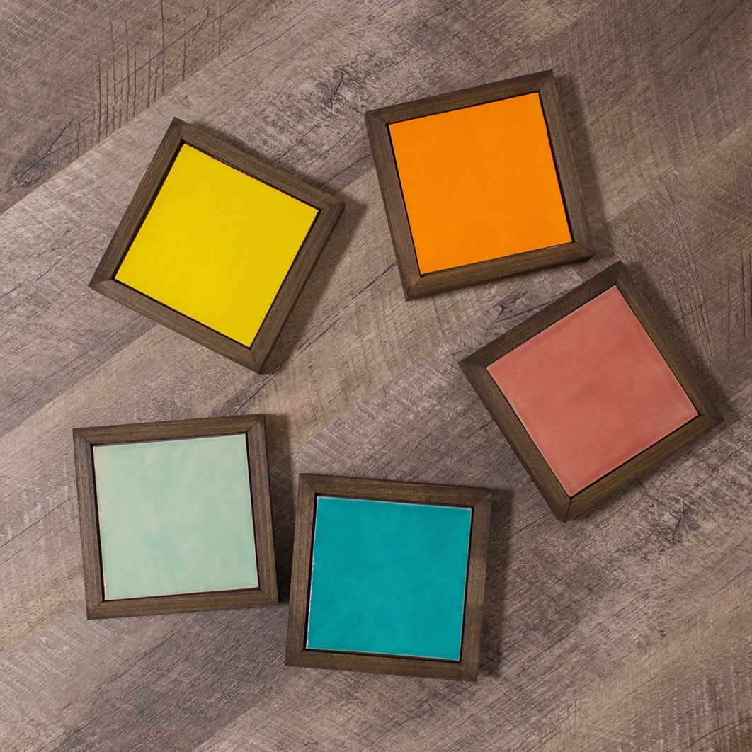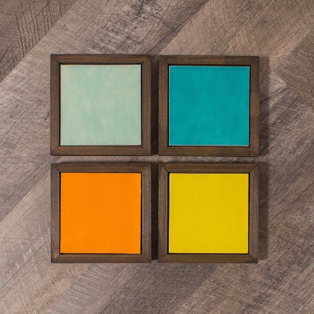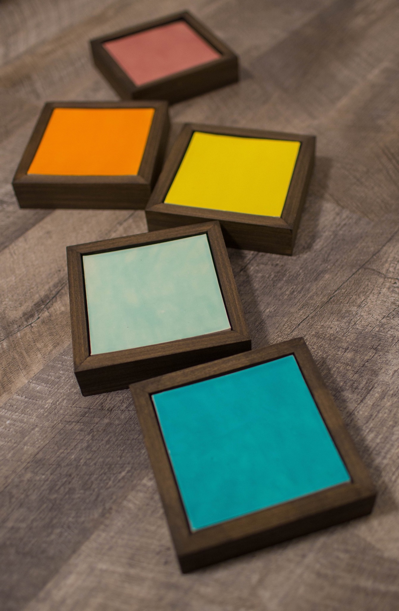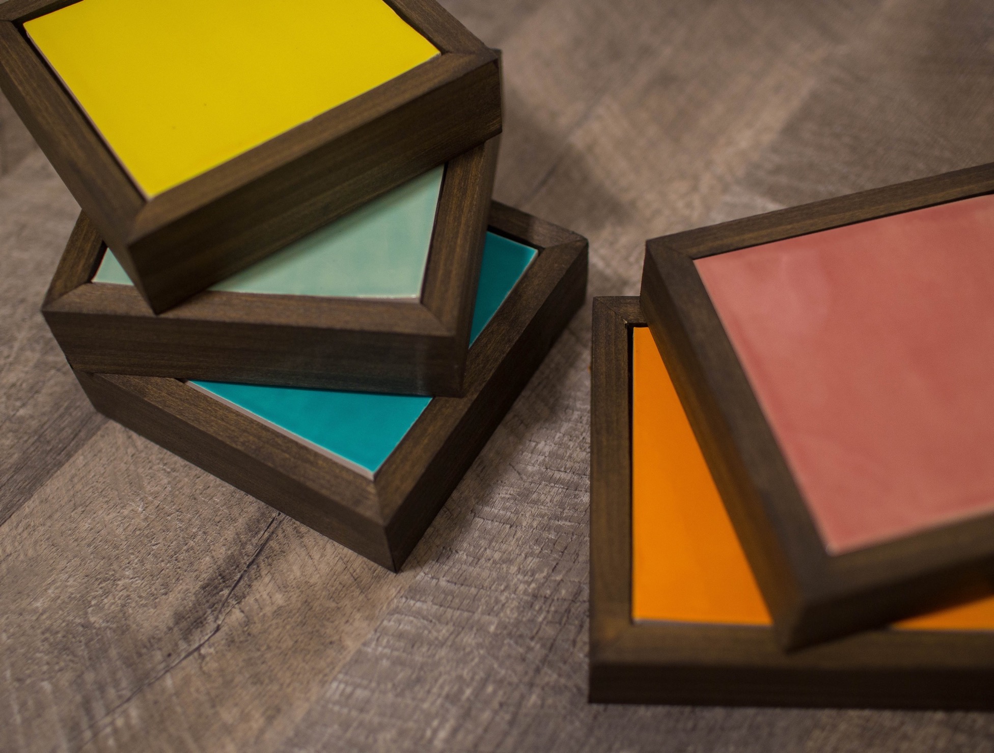 Once again pairing pottery and woodworking, these plates are essentially just tiles that sit in routed frames.