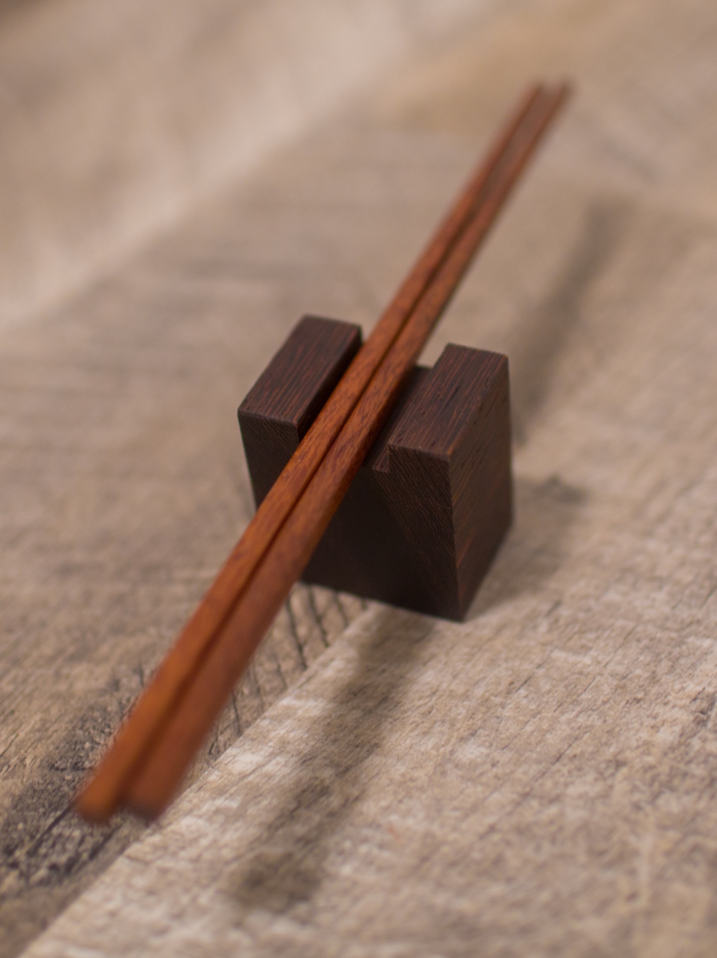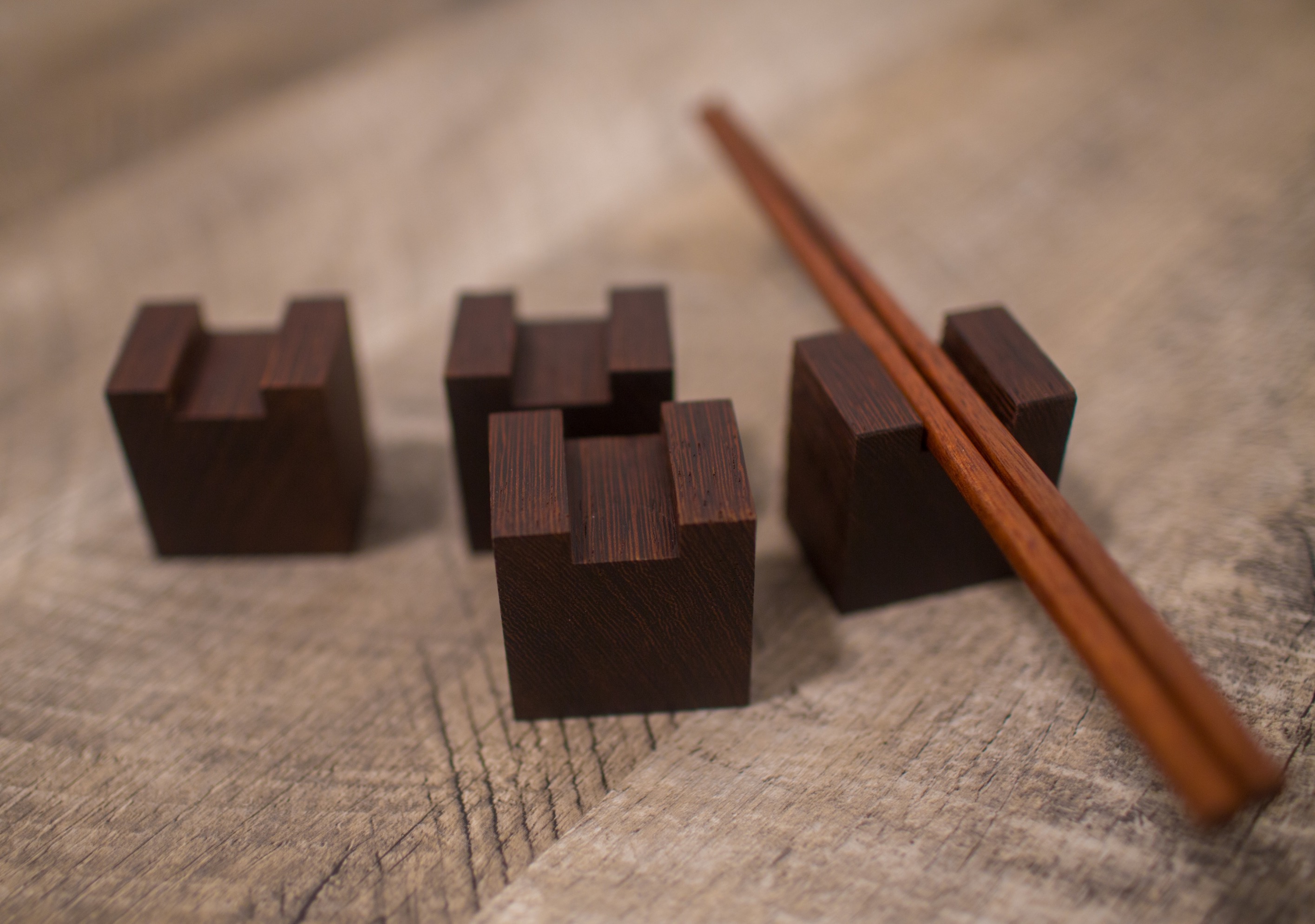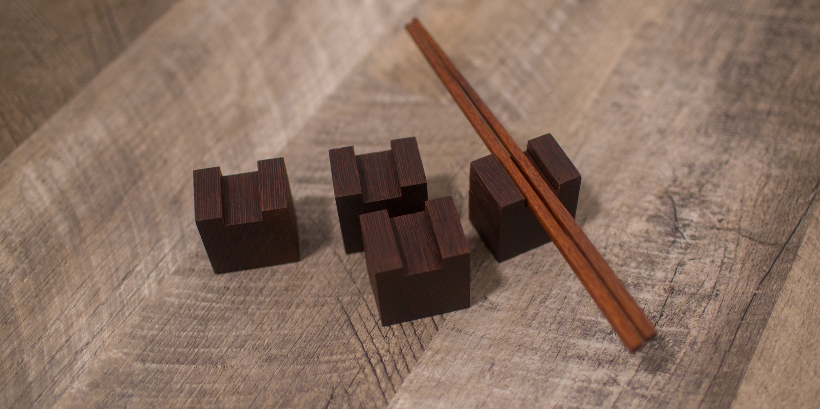 I wanted something to keep chopsticks off the table when I do Japanese menus and the chopsticks stay course after course. These are made of Wenge.