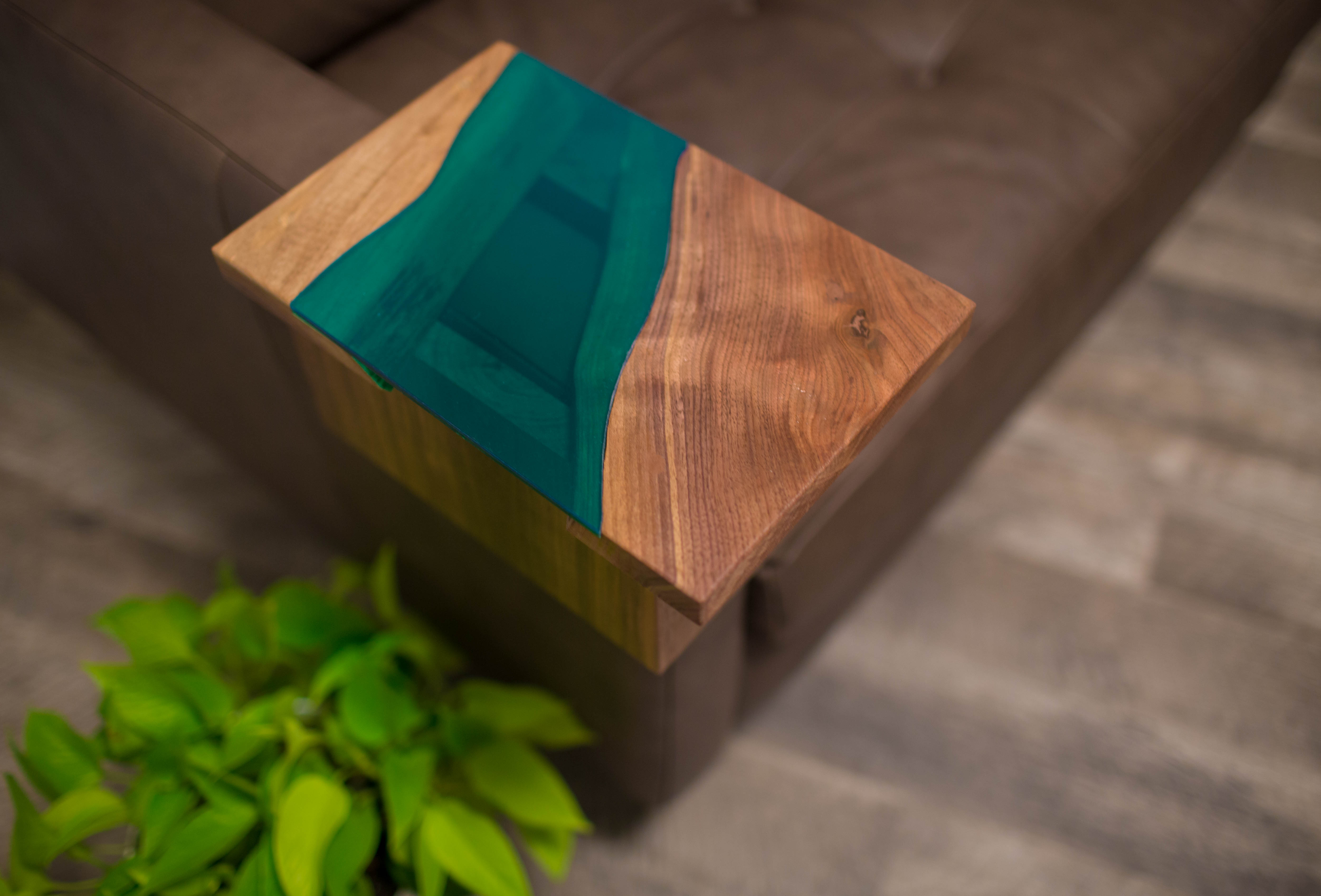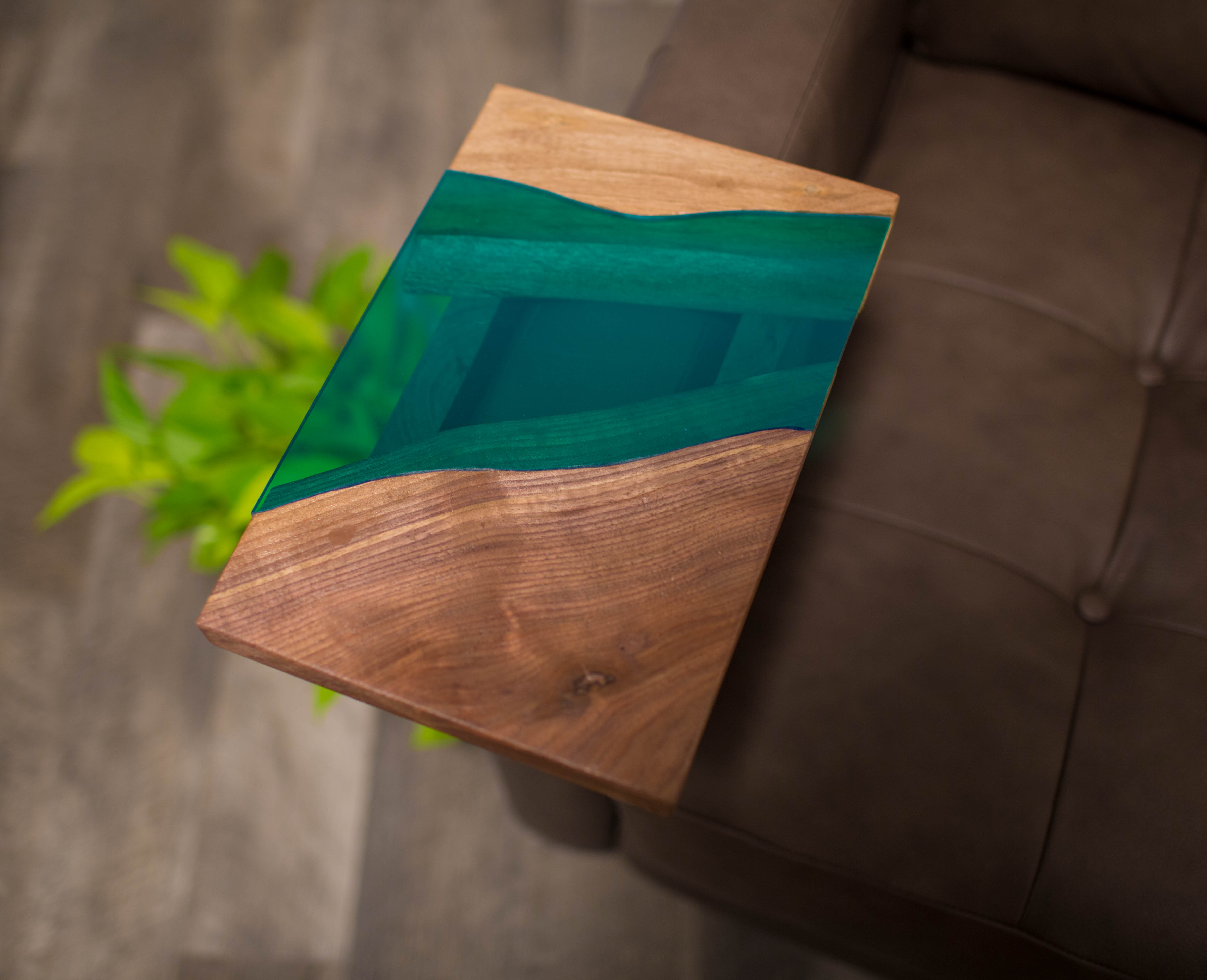 These two sleeves fit over our couch and chair arms to allow a place to set drinks, books or remotes without the need for a full table taking up space in the living room. They are designed to match the River Coffee Table.