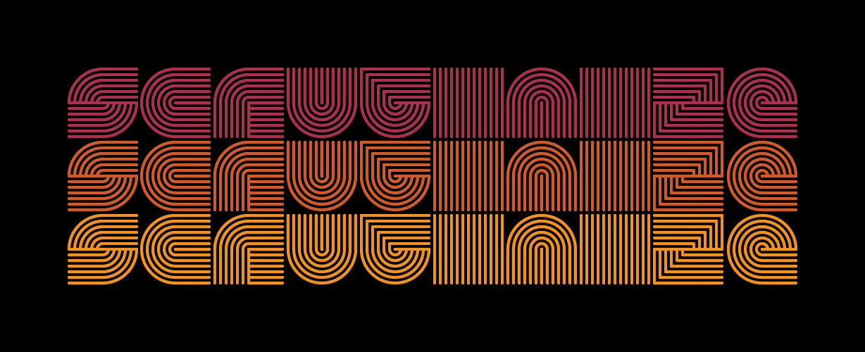 Playing around with shapes to form a retro lettering style using concentric patterns. The rule was that each of the four quadrants of the letter had to contain one of the pattern tiles, so no space in the letterform could be empty.