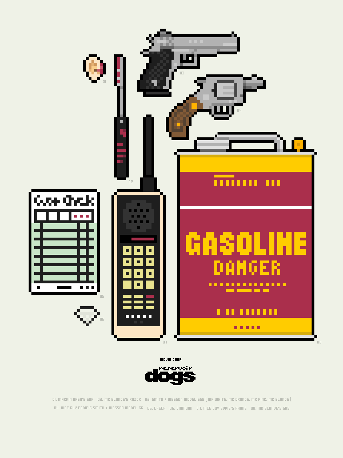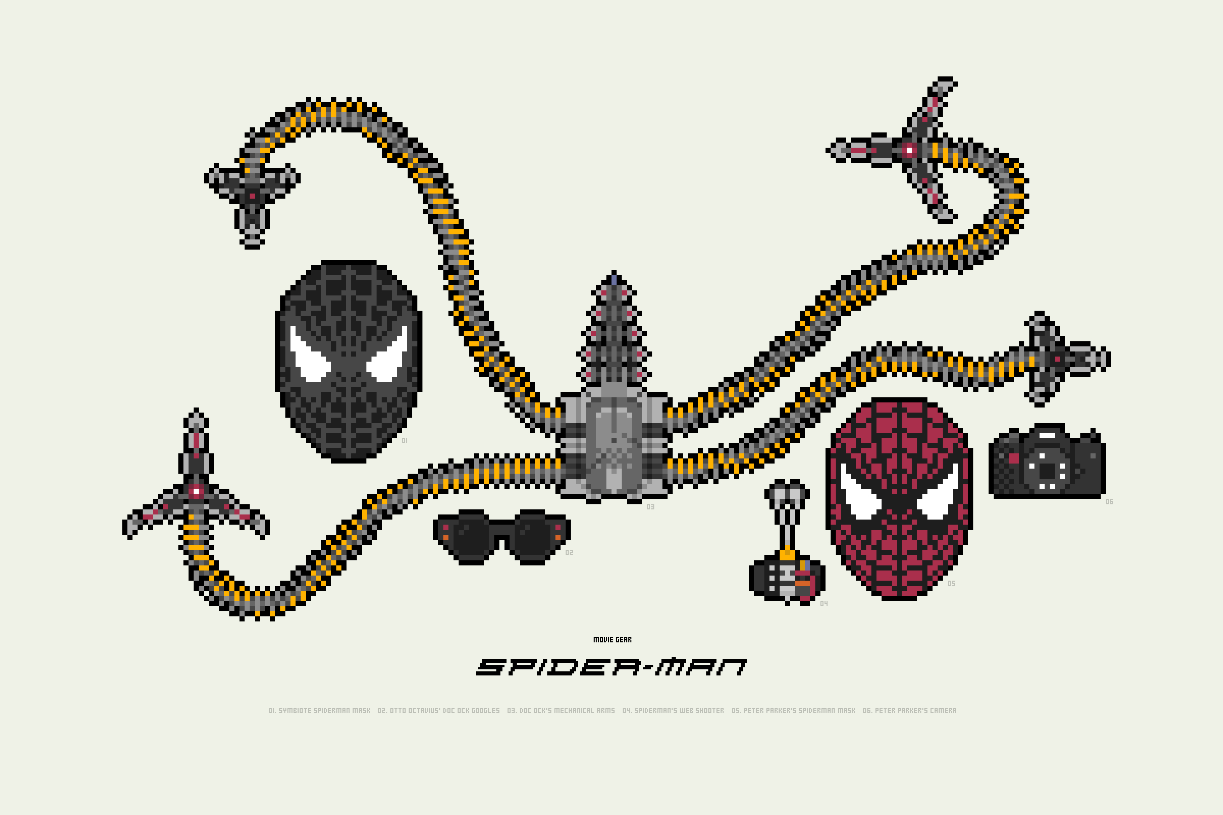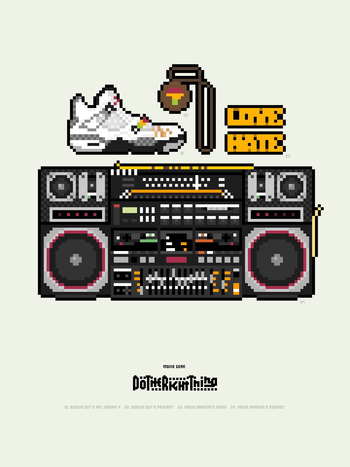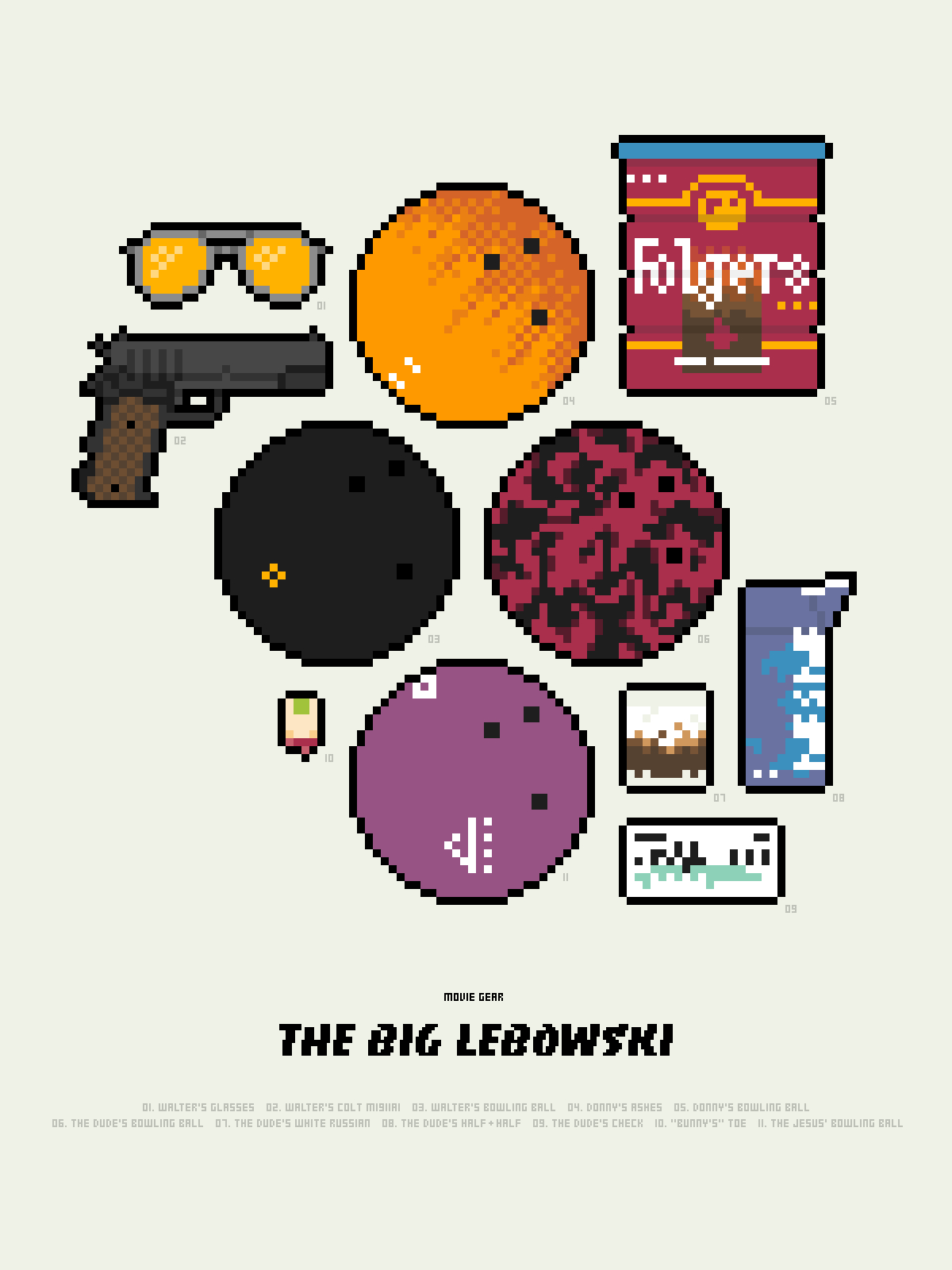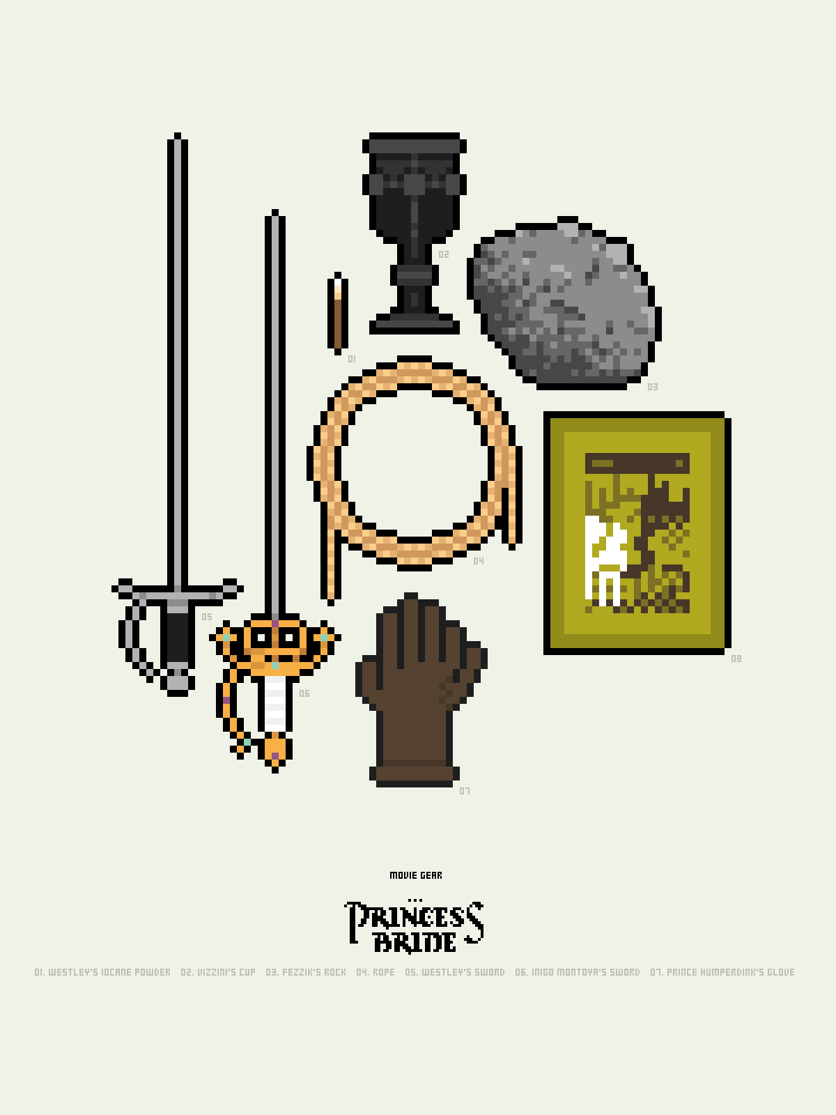 This project simply renders iconic and meaningful objects from films in pixel art form. Each poster becomes a little microcosm of character and plot.