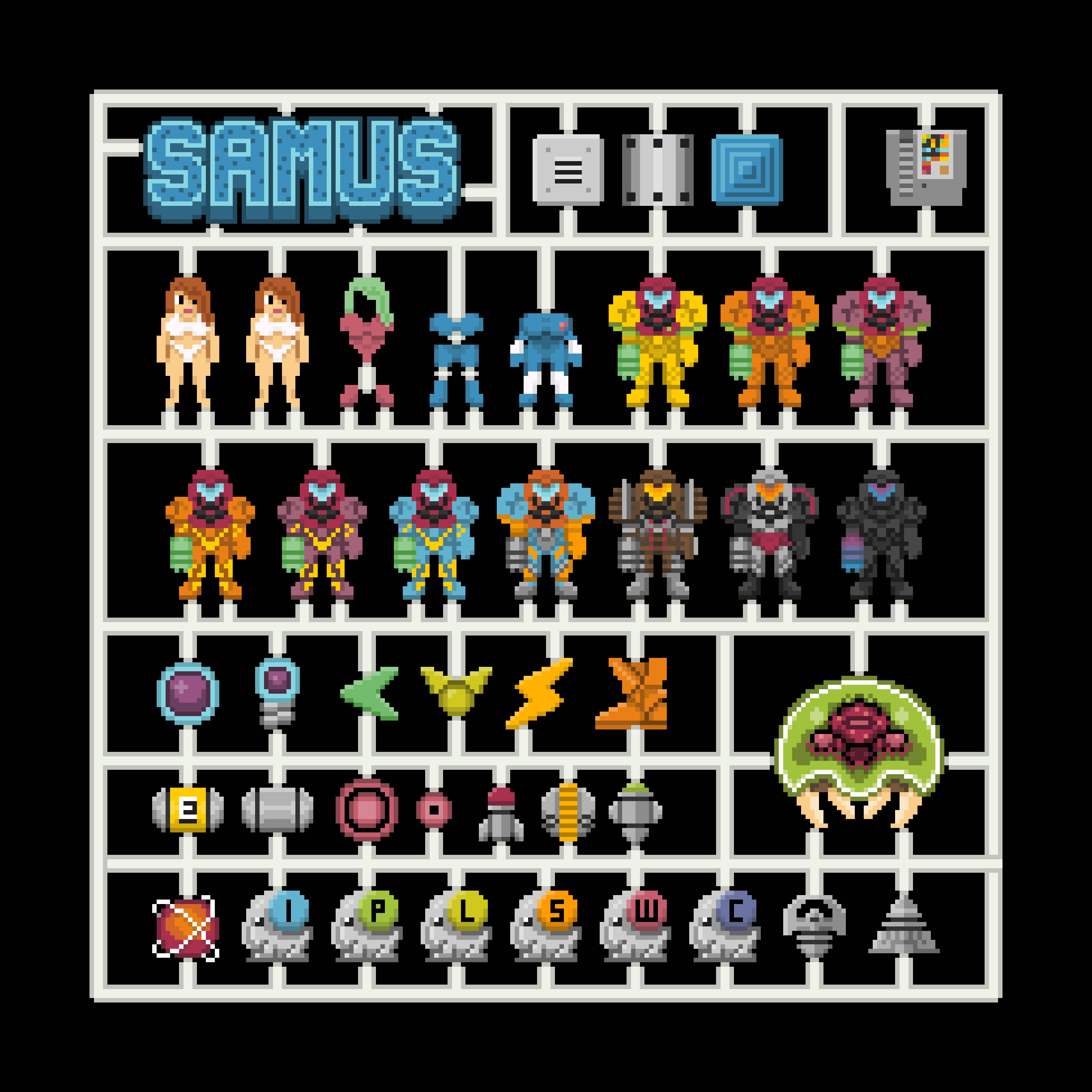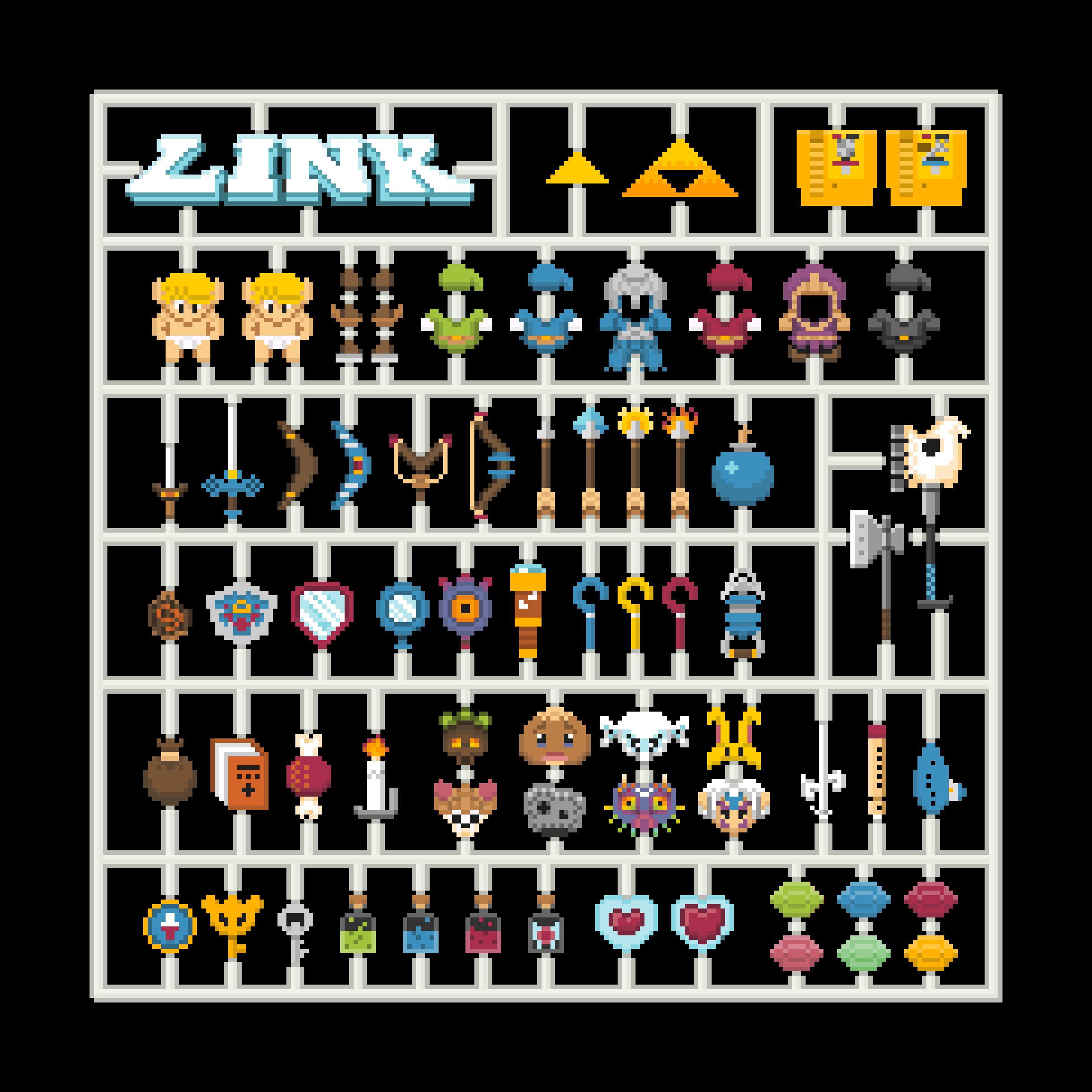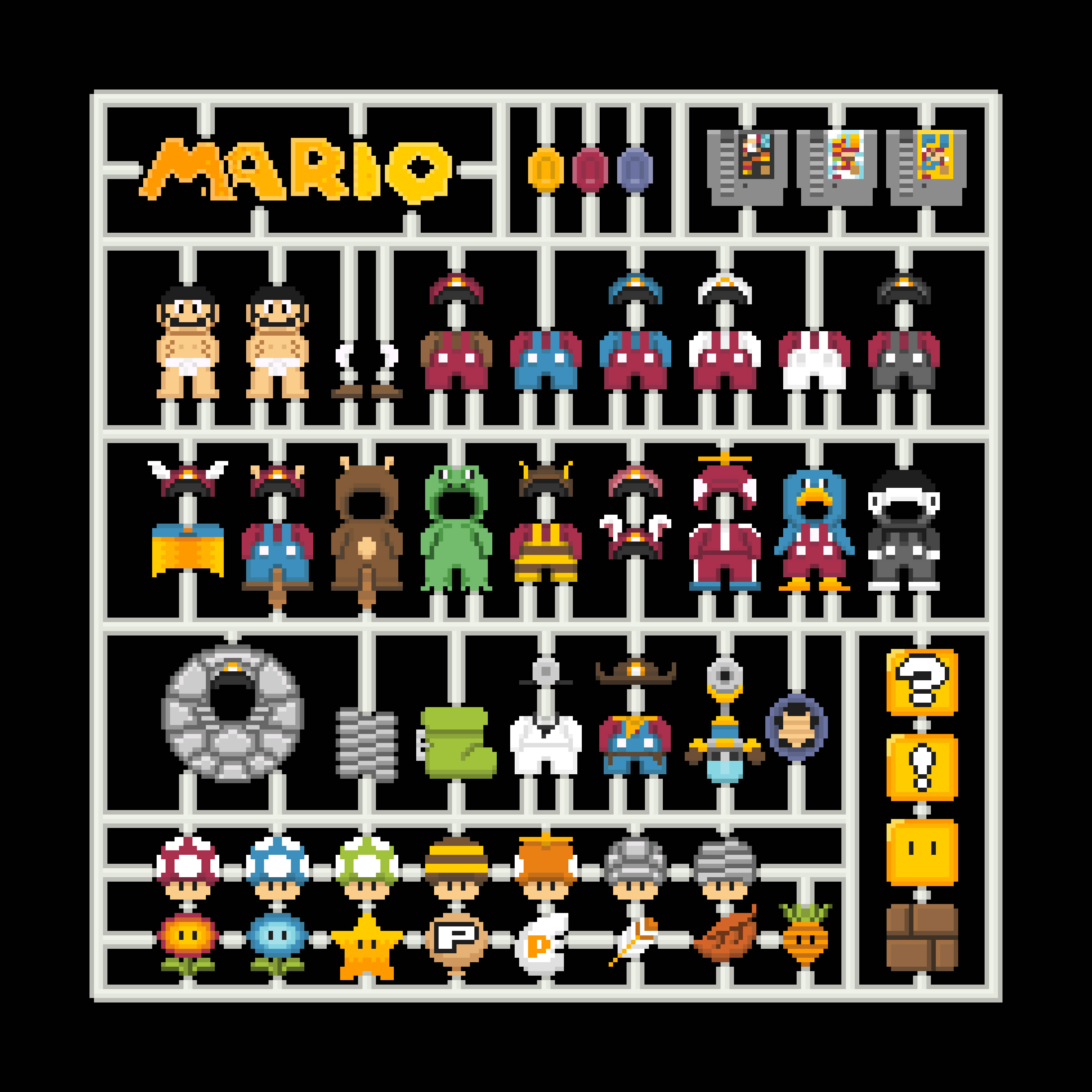 A prequel to the Gear series, Model Kits explored the gear, weapons and items of Mario, Link & Samus. In this case, I added a little gimmick where they are all in plastic sheets like old model kit parts.