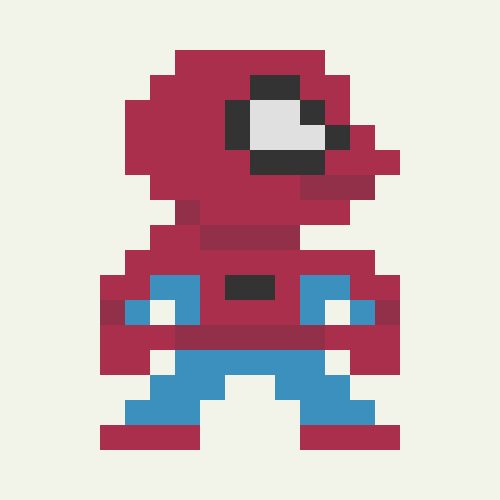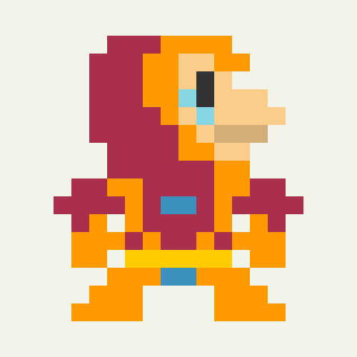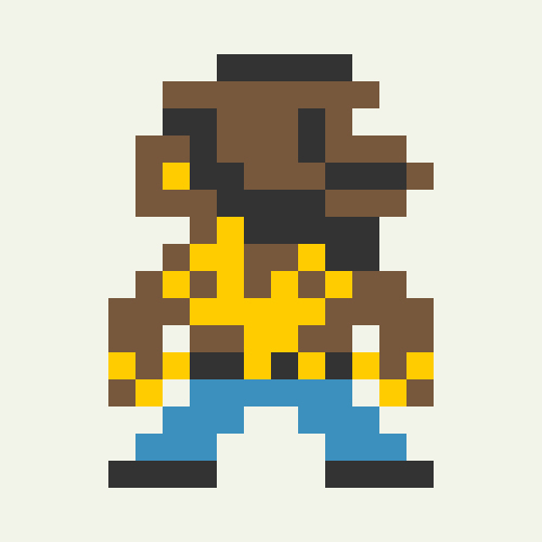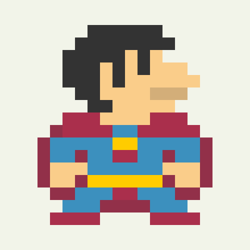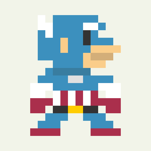 Characters from pop culture drawn as the standing character sprite from Super Mario Bros on the NES. I created 696 characters total. More so than Mega 1 or Cartooned, this was a true exercise in reduction and editing. There are only 12 pixels at the widest point for these characters.